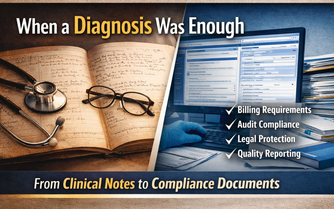 Documentation expanded not because medicine demanded it, but because reimbursement validation required it.